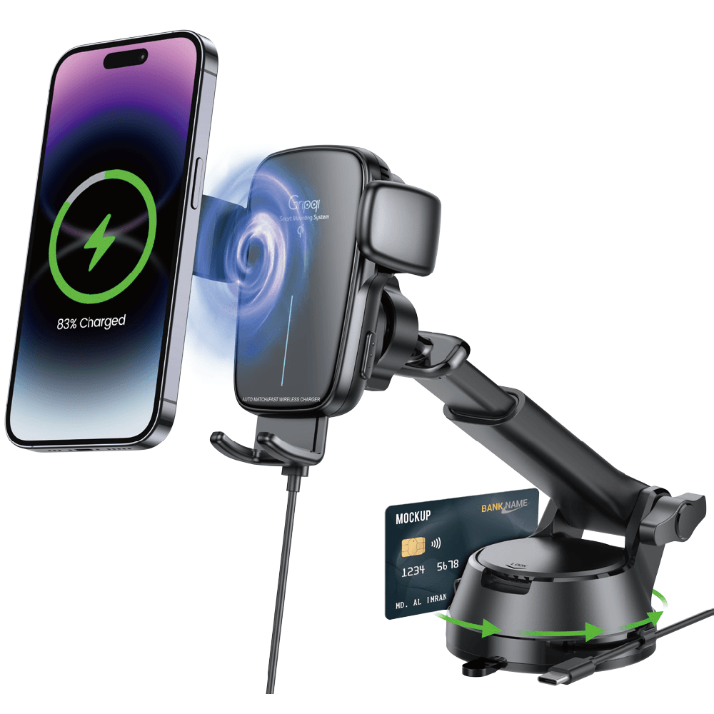 מעמד הטעינה האלחוטית GRIPQI XW-50 מצויד בחיישן קרבה להתאמת הטלפון הנייד אל המטען האלחוטי, עם סוללה פנימית בנפח 100mAh לשחרור התופסן גם אם אין מתח מהרכב. הספק הטעינה האלחוטית עומד על 15W ובסיס הזרוע הטלסקופית מסתובבת 360 מעלות. לבסיס גם תופסן כרטיסים מובנה.